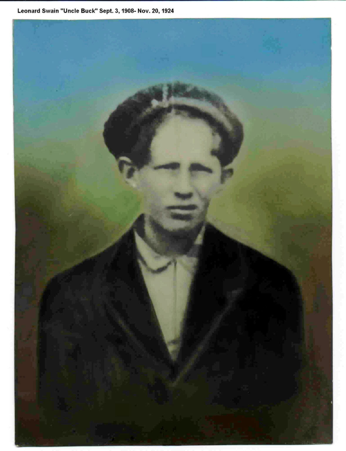 Leonard (Buck) Swain was the first child of William and Emma Swain to be born